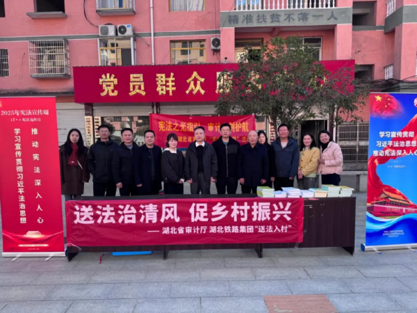 湖北省审计厅携手湖北铁路集团来到英山县杨柳湾镇东夹铺村开展“送法进乡村”活动,为乡村振兴注入法治动能。厅法规审理处和派出内审指导监督处同志通过实地讲解、案例解读、资料发放、村民座谈等形式,与法律志愿者一道将《中华人民共和国宪法》《中华人民共和国审计法》《湖北省内部审计条例》等与农村生产生活密切相关的法律知识送到田间地头,助力基层治理和乡风文明,让法治在乡村同样生根发芽、绽放光彩。
