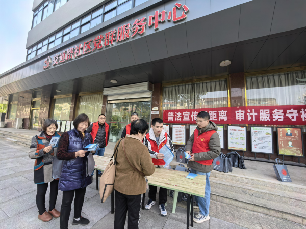 镇江市审计局的志愿者们走上街头开展普法宣传,向群众发放资料、现场答疑,用通俗语言讲解审计机关法定职责、监督范围,并结合宪法读本、民法典手册、防诈指南,解读与民生相关的专业法律条文与政策规定,帮助群众听得懂、记得住、用得上。