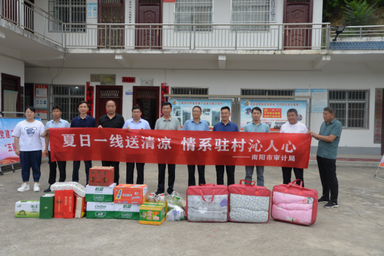 南阳市审计局深入定点帮扶村开展“庆七一”系列活动。为驻村工作队员送去了防暑降温药品和日常生活用品,为两委班子和党员群众代表讲专题党课。帮扶村党员代表和驻村工作队员纷纷表示,一定听党话、感党恩、跟党走,鼓足干劲、加压奋进,带领全体村民共同推进乡村振兴,建设和美家园。