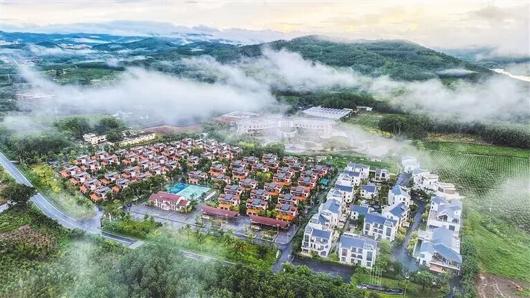 冬日的暖阳轻柔地洒在海南省白沙黎族自治县的山岭间,远处层峦叠翠,近处田畴井然。新高峰村白墙黛瓦的59栋院落静静伫立,温馨空间藏着117户家庭的日常。装配式建筑的利落线条里,是管道燃气的烟火气,太阳能路灯的暖光,则为归家路披上温柔的滤镜。党群服务中心融聚便民、文化与治理功能,船型屋文化长廊诉说乡愁,篮球场的跃动、健身区的活力、口袋公园的绿意,更让日子有了鲜活注脚。