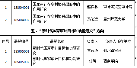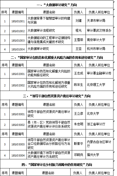 审计署2018至2019年度重点科研立项课题表